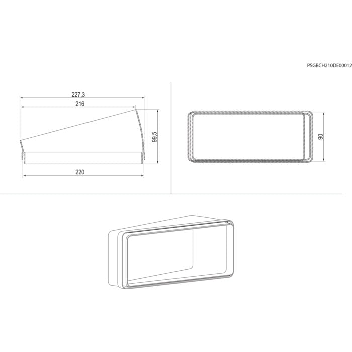 Installasjonsdel (K2) til induksjonstopp med integrert ventilator – rektangulær kurve 15°. Inneholder 1 stk.