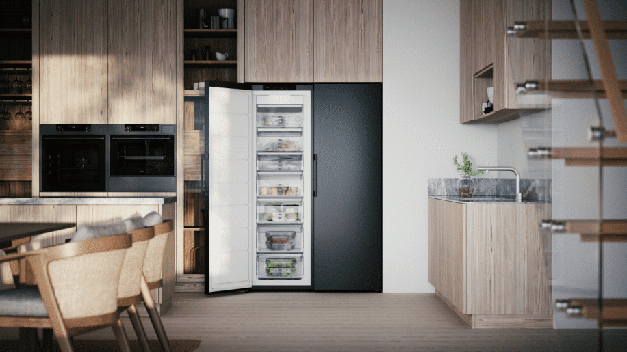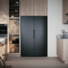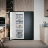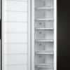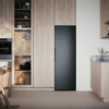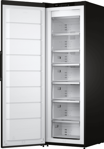En stilig fryser i Black Steel med vertikalt håndtak og et generøst volum på 280 liter. No Frost-frysesystemet eliminerer behovet for avriming og sparer energi. Du kan oppbevare alle typer matvarer på alle hyller takket være Cool Flow-systemet som sørger for at den kjølige luften fordeles jevnt i hele fryseren.