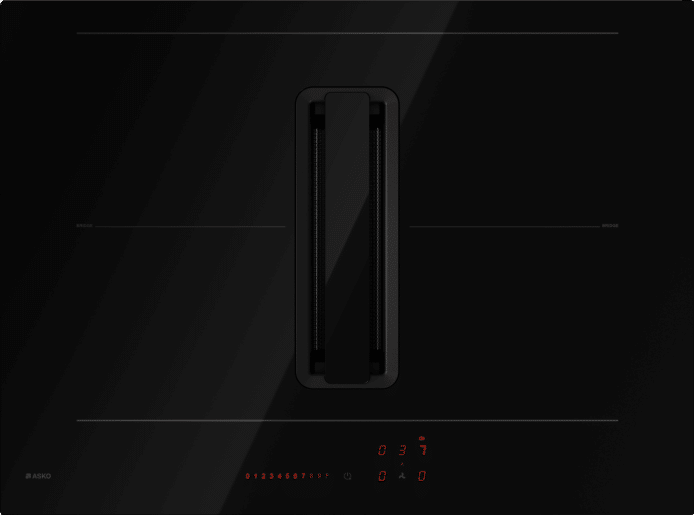 Denne Induksjonstoppen i skinnende svart har et effektivt avtrekk som fjerner røyk og lukt selv under intens matlaging. De kraftige induksjonssonene har mange fordeler, som Bridge Zones, automatisk oppvarming og varmholdingsfunksjon med mer. Den automatiske avtrekksmodusen gjør at avtrekksviftens effekt justeres automatisk etter innstillingene du velger på induksjonstoppen.