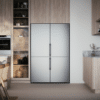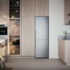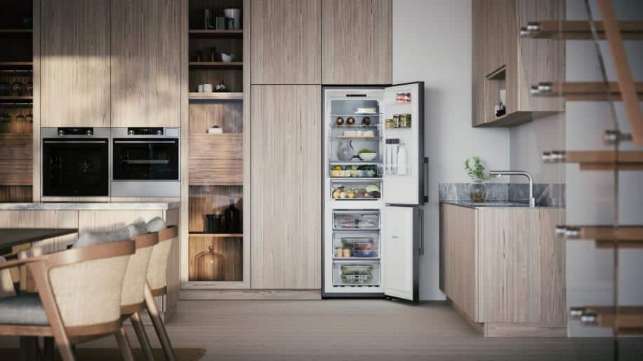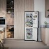 Et stilig kombiskap i rustfritt stål med et vertikalt håndtak og et romslig volum på 220 l i kjøleskapet og 106 l i det konvertible fryseskapet. No Frost-frysesystemet fjerner behovet for avriming og er dessuten energisparende. Adaptive Temperature Control™, Auto Humidity Control og Multi Zone Drawer sørger for at maten holder seg frisk lenger. Du kan oppbevare alle typer av mat på en hvilken som helst hylle takket være Cool Flow-systemet som sikrer at den kjølige luften fordeles jevnt i hele kjøleskapet.