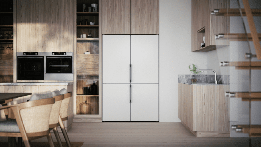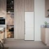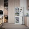 Et stilig kombiskap i hvitt med et vertikalt håndtak og et romslig volum på 220 l i kjøleskapet og 106 l i det konvertible fryseskapet. No Frost-frysesystemet fjerner behovet for avriming og er dessuten energisparende. Adaptive Temperature Control™, Auto Humidity Control og Multi Zone Drawer sørger for at maten holder seg frisk lenger. Du kan oppbevare alle typer av mat på en hvilken som helst hylle takket være Cool Flow-systemet som sikrer at den kjølige luften fordeles jevnt i hele kjøleskapet.