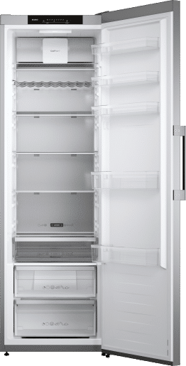 Et stilrent kjøleskap i Stainless Steel med vertikalt håndtak og et generøst volum på 384 liter. Adaptive Temperature Control™, Auto Humidity Control og Multi Zone Drawer sørger for at maten holder seg fersk lenger. Du kan oppbevare alle typer mat på alle hyller takket være Cool Flow-systemet som sørger for at den kjølige luften fordeles jevnt i hele kjøleskapet.
