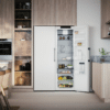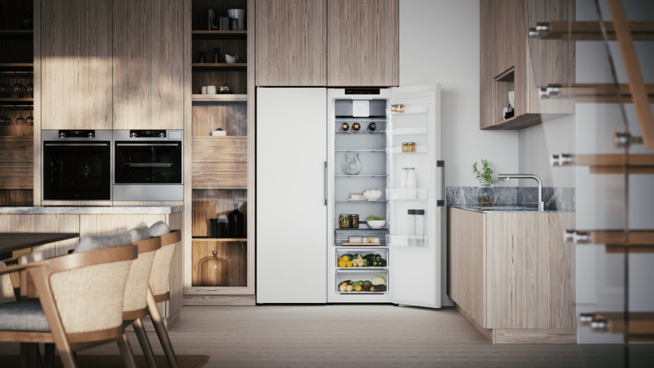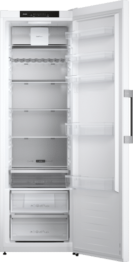 Et stilrent kjøleskap i hvitt med vertikalt håndtak og et generøst volum på 384 liter. Adaptive Temperature Control™, Auto Humidity Control og Multi Zone Drawer sørger for at maten holder seg fersk lenger. Du kan oppbevare alle typer mat på alle hyller takket være Cool Flow-systemet som sørger for at den kjølige luften fordeles jevnt i hele kjøleskapet.