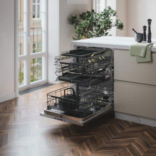 En fullt integrert oppvaskmaskin i XXL-størrelse testet for 20 års bruk, med eksklusivt Flexi Racks™-system i 2 nivåer (pluss toppskuff og midtkurv) som har plass til opptil 17 kuverter. Den har et lavt støynivå (38 dB), Status Light™, Turbo Combi Drying™, Auto Dose, push-to-open-dør og tilkobling. De justerbare kraftsonene, UV-lyssteriliseringen, Super Cleaning System™ og Spray Zone-systemet sikrer perfekt ren oppvask.