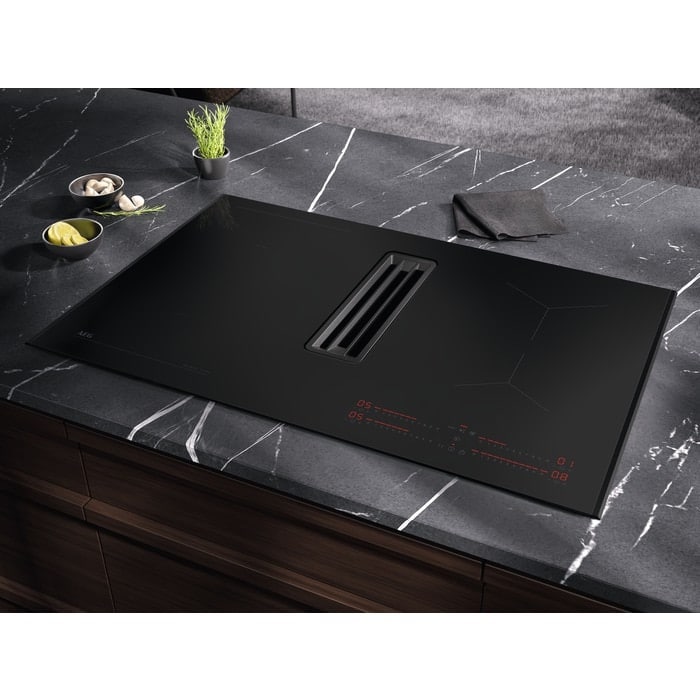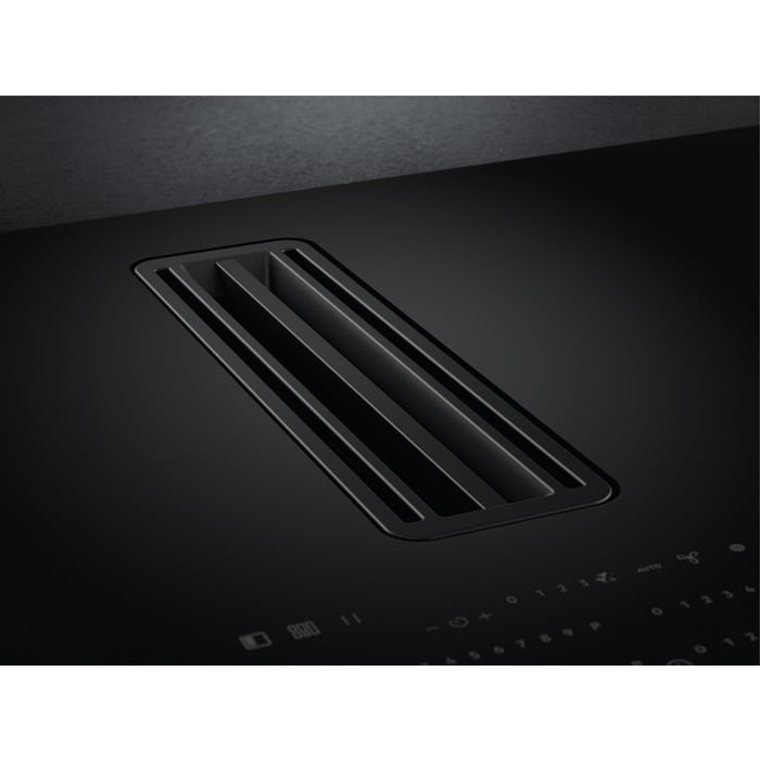 Combohob, induksjonstopp m/ventilator, 83 cm, 4 soner, Bridge, SliderTouch, hawk control, A+, 630 m3/t, kullfilterversjon.